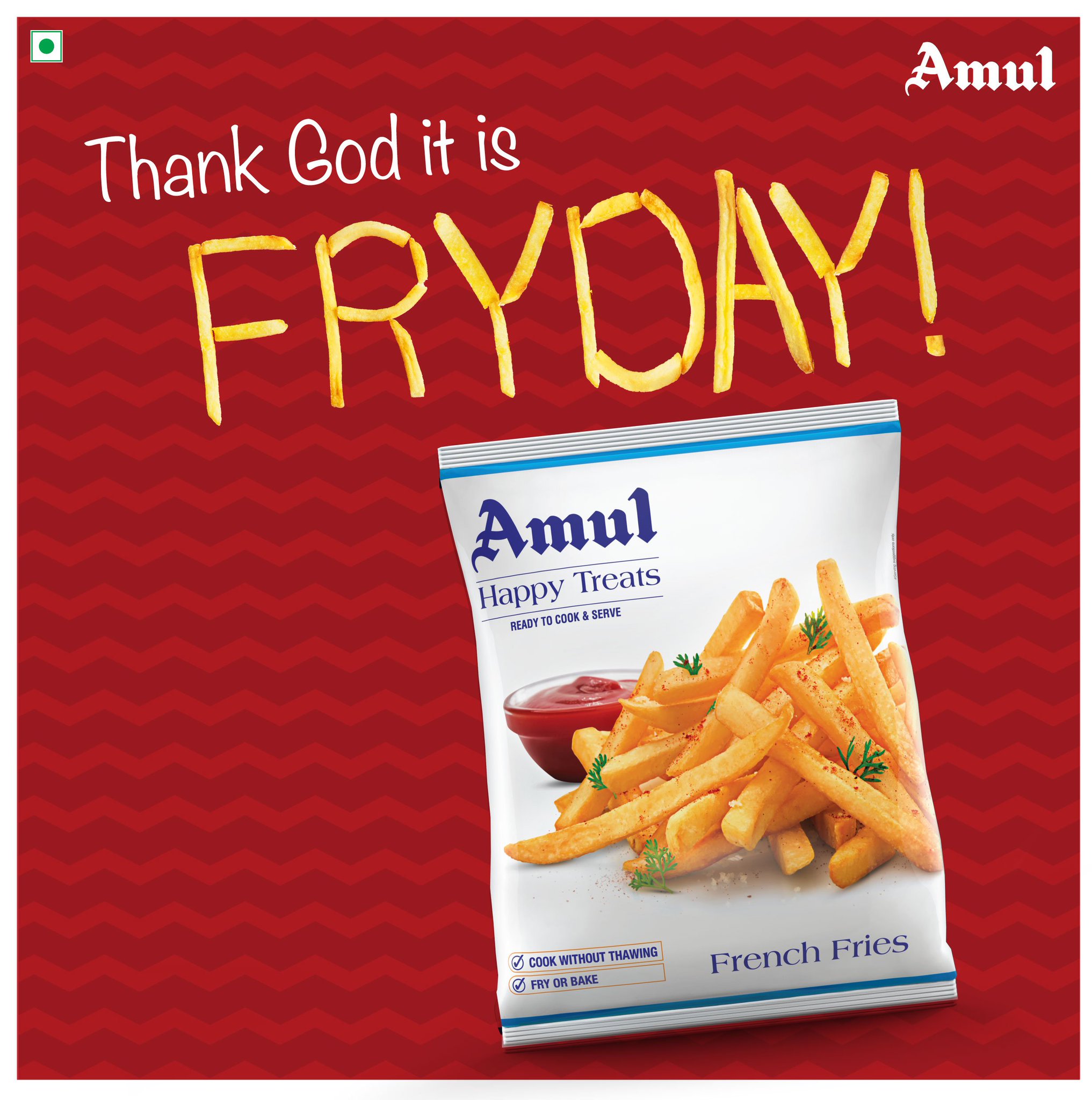 . Amul Happy Treats French Fries can be topped heavily as in the Chili Cheese Fries. 0630 AM - 1000 PM 91 94431 12308. French fries are a favourite of most kids making it an ideal play date or a birthday party snack.
